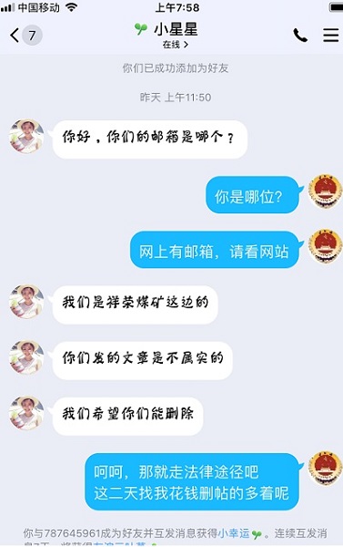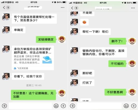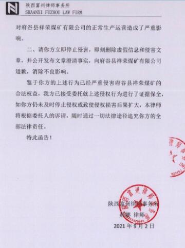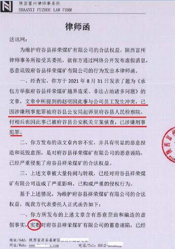 | 府谷县祥荣煤矿被曝光花钱删帖不成,律师函来了 法讯网于8月31日发布了www.faxunw.com/show.asp?id=11823" target="_blank">《承包方举报府谷县祥荣煤矿越界盗采、非法占地诸多问题》,之后多家网站转载。 9月1日上午,有人来电问多少钱删除,法讯君答复无法删除。 ![]() 法讯君在朋友圈发出后,此人联系法讯君说可以删除,法讯君可以分得至少1万元! ![]() 2日上午,有人加QQ后称是祥荣煤矿这边的,说文章失实。法讯君让走法律程序。 ![]() 而后又有人加微信,经比较该人头像和那个自称祥荣煤矿的QQ头像一致,便不予理睬。 律师函所说的问题,能提供相应的证据来说明吗?就一纸函件而已!对此,法讯君还是忍不住说二句:有错别字是小事,但说“赵明因此事与公司员工发生冲突,已因涉嫌刑事犯罪被府谷县公安局起诉至府谷县人民检察院。付相兵也因此事被府谷县公安机关立案侦查,已涉嫌刑事犯罪。”这些话是律师事务所能说出来的?一个举报就被公安机关列为犯罪?这是在诋毁当地政法机关吧?! 事实是这样的吗?就在9月2日上午,该律师函所说的因涉嫌刑事犯罪被府谷县公安局起诉至府谷县人民检察院的赵明还电话法讯君,说祥荣煤矿已停产,能源局还电话他本人请他一起去现场指证呢! 至于说祥荣煤矿越界盗采60万吨原煤,赵明有一大袋子票据能证明此事,还有《祥荣煤矿5-1#安全生产托管协议》就能反应出问题,祥荣煤矿能开采5-1#煤层吗?举报的第二项是存在安全隐患,该矿六大系统均不完善,运输巷与回风巷共用,无人员定位,无监测监控,无压风自救,所有巷道设施均不完善,一通三防无一健全。曾经发生死亡事故,曾被榆林市能源局检查发现存在安全隐患被停产。至于说举报的第三项非法占用10余亩土地,有图有真相。这三个问题,是恶意歪曲和编造的虚假事实么? 律师是全力为当事人服务不假,但律师是法律人员,法律人员追求的是公平公正。法律人士对违法行为视而不见是法律的耻辱。而违背本心,罔顾事实地为当事人遮掩,则是对法律的亵渎! 法讯网发布文章不代表法讯网观点,只是根据举报人提供的事实和证据发布,对此律师函本网也照实发出。至于该律师函中所说的是否属实,由该律师事务所承担相应的法律责任,付相兵和赵明二人如果追究诽谤责任,与本网无关。 |