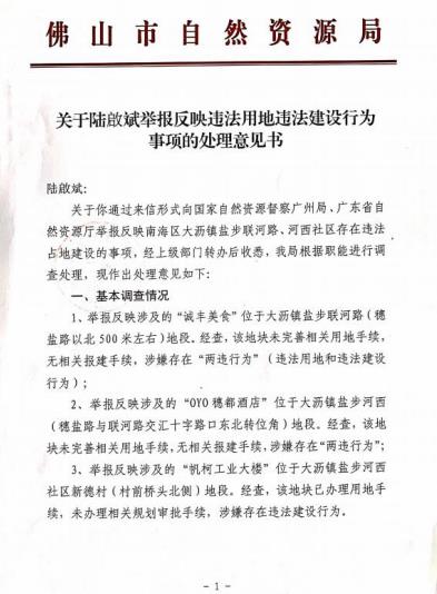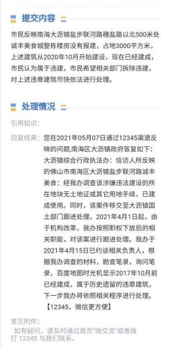 为什么专项整治下 佛山大沥的违建越查越建 近日,佛山市纪委监委出台《关于持续深化基层执法领域侵害企 业和群众利益突出问题专项整治的工作意见》,决定在更大范围、更 宽领域、更深层次上持续深化基层执法领域侵害企业和群众利益突出 问题专项整治,整治领域包括城市管理等与企业和群众利益息息相关、与营商环境高度关联的基层重点执法领域。 整治重点锁定基层重点执法领域充当不法分子“保护伞”等以权 谋私问题;选择性执法等滥用职权问题;对群众合理诉求推诿扯皮、冷硬横推,执行上级决策部署不力,有法不依、执法不公、执法不严、违法不究等失职失责问题。 根据佛山市党风廉政建设暨廉洁佛山建设领导小组办公室近日 印发的《关于开展佛山市党政机关作风突出问题专项整治的工作方案》 (以下简称《方案》),佛山正重点聚焦各级党政机关党员干部和工 作人员存在的“庸、懒、散、拖、乱”等突出问题,在全市开展党政 机关作风突出问题专项整治。 此次专项整治范围为全市党的机关、人大机关、行政机关、政协机关、监察机关、审判机关、检察机关,以及人民团体和参照公务员 法管理的事业单位的党员干部和工作人员。今年7月至9月为专项整 治阶段,之后转为常态化整治。 佛山大力专项整治阶段,佛山南海大沥镇在村改攻坚方面,突出狠抓落实村级工业园的拆除工作。 据 2021年8 月16 日的《今日头条》《大沥发布》介绍,大沥镇目前已累计整理拆除村级工业园 1.5348 万亩。2021 年上半年,大沥紧盯 5100 亩的全年村改目标,已完成拆除改造 2636 亩,完成率超50%。 下半年,大沥将继续推进2464亩村改任务,确保今年完成5100亩、2023 年前完成11400亩拆除改造任务,为发展腾出空间,加快城乡融合、村改攻坚的步伐,助力大沥乃至南海高质量发展。 大沥倒排“时间表”,啃下“硬骨头”。实施挂图作战,9 月底 前完成太平社区 350 亩的工改工土地整理协议签署,今年底完成奇槎 奇西项目、桂澜路北延线项目、盐步水闸区域、大沙区域以及沿江片区等合计 1500 亩的拆除改造。 用足“好政策”,推动“连片改”。充分利用“毛地入市”政策,加快村级工业园、专业市场改造。其中,沥北湖马工业园 164亩项目争取本月底完成竞标;推进大转湾片区581亩专业市场升级改造,夹 板城龙船洛地块、盐步家具城计划9月完成挂网。 拿出“硬手段”,形成“大合力”。持续加强综合执法整治力度,利用全链条约束工作机制,提高执法效能,加快产业空间重构和生态空间腾退,为安全产业、泛家居、新材料、智能制造、时尚设计、现代商贸提供发展空间。 在当前,佛山大力整治执法力度的同时,为什么佛山市南海区大沥镇溪一股份经济合作社范围内的三处违建 “诚丰美食” “OYO 穗 都酒店” “帆柯工业大楼”越查越建?群众多次向佛山市南海区城市管理和综合执法局、佛山市南海区大沥镇查处治理违法用地违法建设共同责任制领导小组办公室、佛山市南海区大沥镇综合行政执法办 公室、向佛山市纪委实名投诉举报,佛山群众 6 次向佛山市 12345 实 名投诉,该违建在边查边建中公开使用违建营业了,至今没有拆除。 佛山市南海区城市管理和综合执法局(南城管信〔2021〕28 号) 《佛山市南海区城市管理和综合执法局关于陆啟斌等人信访事项的答复意见书》答复:“上述两处涉嫌违建物的处理不属我局职能范围,我局已将上述线索发函至相关部门跟进处理。” 而佛山市自然资源局也就此问题书面回函答复:“未办理相关规 划审批手续,涉嫌存在违法建设行为。” 对群众举报的佛山南海大沥溪一的三处违建拆除职责,佛山市南海区城市管理和综合执法局书面答复不属于我局的职责,佛山市自然资源局答复已将两违行为移交至大沥镇综合执法部门处理,两个执法部门相互推卸责任,至今没有拆除三处违建。 佛山南海大沥三处违建情况 1.南海区大沥镇盐步联河路(穗盐路以上北 500 米处右边)“诚丰美食”占用公共用地 3000 平方米的违法建设(2021 年3 月2日拍摄) 2.佛山南海大沥镇盐步河西社区新德村(村前桥头北侧)的“帆柯工业大楼”工厂总建筑面积为 3473.18 平方米的违法建设(2020 年11月16日勘察) 佛山市南海区城市管理和综合执法局于 2020 年 3 月 26 对上述违 建进行了现场勘查,并对当事人梁锡流做了笔录,执法人员现场拍摄 的照片显示违建尚未封顶,正在建设之中,但实际执法的情况越查越 建,不仅当事人公开进行建设,而且在执法人员的“执法”中建成使用,利用违建对外公开营业,至今没有拆除,像这样的违建情况在佛 山大沥普遍存在。相反,在紧邻上述违建被佛山大沥列入土地整理范围内的其他厂房建筑,佛山市南海区城市管理和综合执法局却以迅雷不及掩耳的速 度进行强制性拆除,有选择性执法的现象。 当前,中央正在开展违法建设专项清查工作,在违法建设专项治理工作五年行动方案的背景前提下,要求对新增违法建设实行零容忍,发现一起,查处一起,建立健全违法建设快速拆除机 制,对发现的新增违法建设要立即予以制止,坚决刹风止乱。 希望佛山南海大沥城管执法部门会对辖区的违建有一个公正的处理结果,以便营造佛山市人民群众的良好生活环境。 |