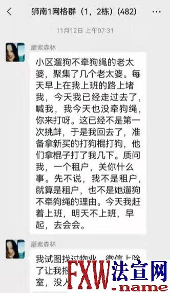 武汉警方受理“以死对抗遛狗人”案,警方告知女子家属该案为重大疑难案件 近日,湖北武汉女子卢某林以命和遛狗人抗争一事引发关注。11月23日,卢某林家属告诉记者,目前亲友们已去警局做了笔录。狮子山街派出所回应:警方以卢某林被寻衅滋事受理了该案件。 卢某林曾在微信群讲述自己被遛狗老人围堵 11月13日凌晨,家住武汉洪山区金地圣爱米伦小区的35岁女子卢某林从32楼跳楼身亡。家属在其微信群中发现,卢某林轻生前曾多次被小区数位遛狗不牵绳的老太太围堵侮辱。卢某林曾向物业反映该情况却没有效果。11月12日,卢某林在小区微信群表示要“以死抗争”,次日便自杀身亡。 卢某林家属认为,是遛狗人长时间的侮辱、物业等部门长期无视导致卢某林走投无路“以死抗争”。在卢某林死后,家属们来到武汉市狮子山派出所请求立案。11月23日,狮子山街派出所回应:警方以卢某林被寻衅滋事受理了该案件。 “今天我们亲友和证人来派出所录笔录,有卢某林的普通朋友因做笔录被带走8个小时。最后警方也未透露是否已联系调查遛狗者、物业,只表示该事件属于重大疑难案件,需要30个工作日后才能告知是否立案。”卢某林家属介绍。