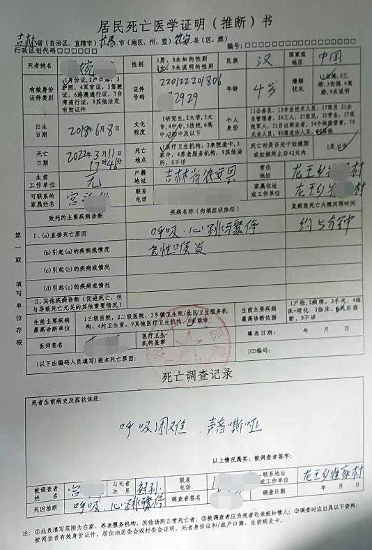 因为急性喉炎,吉林4岁女童小婉君(化名)2022年3月11日于吉林省长春市农安县人民医院就医,在等待核酸检测结果期间,疑因没有得到及时救治而发病身亡,近日这一报道引发了广泛关注。 4岁女童小婉君 图片来源于“健康界”报道 图片来源于“健康界”报道 3月16日下午,正观新闻记者联系到了小婉君的家属,家属表示,目前已经和医院达成和解。 据“健康界”报道,医院出具的死亡医学证明(推断)书上显示:小婉君的直接死亡原因为“呼吸、心跳骤停”,引起疾病为“急性喉炎”。 3月11日,因喉炎问题,家属带着小婉君前往吉林省长春市农安县人民医院就医,期间根据要求做了核酸检测。但从14点21分家属带着小婉君到科室就诊,到16点40分家长发现小婉君情况不对向医生求救这两个多小时期间,家属根据医护人员的指示,带着孩子在五官科、发热门诊、过渡病房等几个地点来回移动,却始终没有得到确实的救治。 当天的16时50分,经抢救医生宣布小婉君已无生命体征,“经会诊后,患者已临床死亡”。在家属要求下医生继续抢救,17时46分,医生宣布小婉君临床死亡。 图片来源于“健康界”报道 3月14日,农安县人民医院副院长王雪东回应“健康界”称,他在看过患儿诊疗的监控录像之后,个人认为整个接诊过程的时间的确过长。同时他也诚恳表示医院跟患儿家属提出了两个解决方案,一个是通过医调委双方进行调解,如果医院的工作存在疏漏,愿意承担赔偿责任,另一个是走法律途径,就是患儿家属到法院去起诉医院。 16日下午,针对事件进展,小婉君的家属告诉正观新闻记者,“院方对于此事很重视,给予了相关医生护士最严格的处置,相应的处理也很合理、很公道,我们家属也认可了。”而对于记者询问的有无书面文件等问题,家属则称“正在办理”。 来源:青岛新闻网财经 |