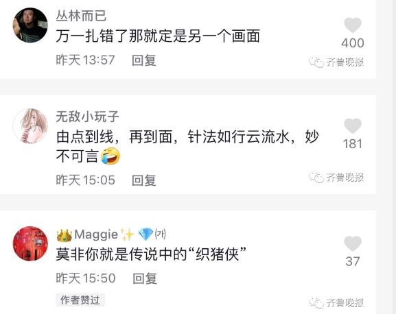 老公赖床不起咋办? 山东威海的荣女士想出一招 既然不起,就缝在沙发上吧 据威海的荣女士, 老公在沙发上躺了5个多小时 不陪自己和孩子玩, 老公说自己可以除了吃饭上厕所一直在沙发上 荣女士越想越生气,就趁他睡着, 用针线把衣服和沙发缝在了一起。 ![]() 因为另一面是沙发背不太好缝, 所以就只缝了半边身子 ![]() 她说缝的时候还挺解压的, 孩子还在他手上涂美甲 丈夫睡醒后动了几下动不了, 发现自己被缝起来后也笑了起来。 家庭生活也少不了一点小乐子呀! 网友评论 ![]() |