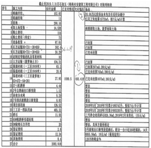 中水六局认为已经支付完工程款,而石如玉、水安公司认为中水六局要按照史书宇微信发送的《对账明细表》结算。2021年5月15日,石如玉和水安公司向法院起诉中水六局,要求支付海南省红岭灌区东干渠施工款项人民币7969935元及仲裁费63383元、保全费5000元、保全保险费13426.09元。