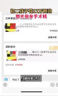 [摘要]近日,河北保定。村民李先生报警称,自家孩子在他们不知道的情况下,花12万元购买游戏账号、手机、衣服等,而这钱本来是要给爱人做腰部手术用的。 近日,河北保定。村民李先生报警称,自家孩子在他们不知道的情况下,花12万元购买游戏账号、手机、衣服等,而这钱本来是要给爱人做腰部手术用的。民警称,孩子上初二本身较叛逆,事发后警方便与购物平台客服联系,告知对方买家是未成年人。经多天反复协调,除手机等物品已被使用无法退还外,平台将充值游戏的钱依法一笔笔地退还,目前已退款6万余元。 |