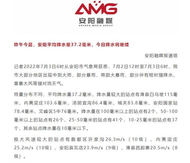 极目新闻记者 李贤诚 7月3日上午,河南安阳两男子雨中驾车经过一积水的涵洞时遇险,当地第一时间开展救援,但二人已不幸身亡。有附近居民透露,涵洞积水有两三米深,车辆遇险后二人曾紧急下车,但后来准备将车移出时遭遇意外。 现场视频显示,一下穿涵洞处的积水离桥面很近,已有多辆消防车及救护车赶到现场,救援人员正组织开展救援工作。事发地附近围有警戒线,现场小雨一直在下。 被淹涵洞(图源:网络) 记者了解到,事发河南安阳。救援现场附近有居民告诉极目新闻记者,3日上午8时许,当时雨下得正大,两名男子驾车准备穿过涵洞,但因为积水太深车辆被困,车上的两名男子赶紧下车,还向附近居民询问哪儿有拖车的。“可不知怎么回事,这两个人又自己下水试图将车弄出来,结果出现了意外。” 另一居民说,“涵洞处积水估计有两米多深,现场救援持续了两个多小时。两名男子被捞起来后,人已经没了,被拉到殡仪馆去了。”3日下午1时许,救援人员才全部撤离,目前涵洞位置还在不断地向外排水。 有现场救援人员向极目新闻记者证实,两名落水男子被捞出来后已不幸身亡,现场涵洞积水最深处接近3米。 当地天气情况(图源:微信公号“安阳融媒”) 据安阳当地媒体报道,7月2日12时至7月3日6时,该市大部分地区出现中到大雨,部分暴雨,局部大暴雨,部分伴有短时强降水、雷暴大风等强对流天气。雨量分布不均,平均降水量37.2毫米。降水量在100毫米以上的站点有2个,50-100毫米以上的站点有26个。 |