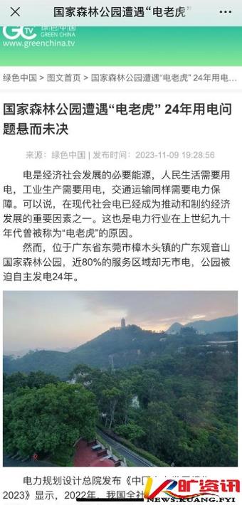 观音山公园和东莞供电局的纠纷长达24年!因为拒绝大贪官前东莞市委书记刘志庚的强买而受到长期打压,先是五条高压线违法在国家森林公园核心保护区架设,再是经常错峰限电,继而一直拒绝给观音山公园全面供电,致使公园目前有80%的服务区域没有市电供应。