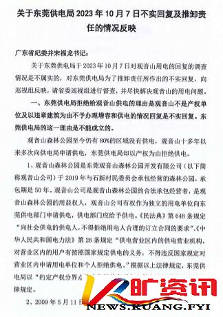 东莞市供电局代中央巡视组回复了观音山问题