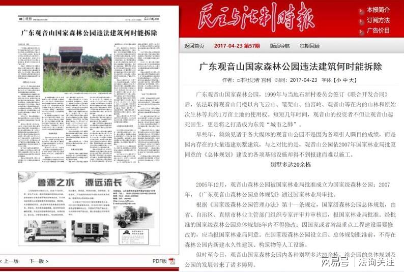 东莞构建全方位控违治违体系 观音山大量违建无人理 特约记者 郑义 南方日报于3月29日以《从地面到空中,东莞这样构建全方位控违治违体系》为题进行报道:3月27日,东莞各镇街(园区)同步举行违建治理联合执法拆除现场会。近年来,东莞城管狠抓农房违建,严控快处小区类、产业类、公共配套类等各类违建,基本实现新增违建“零增长”、历史违建“减存量”。 最新数据显示,2023年至今,东莞全市累计治理违法建设面积3690.42万平方米,助力东莞拓空间和城市品质提升。 打造从地面到空中的立体防控体系 东莞通过高频网格巡查、航拍比对、无人机巡查、明察暗访等多种举措,打造从地面到空中的立体防控体系。东莞城管实行“全天候、全方位、无缝隙”网格化巡查,每周市、镇、村三级定人定岗定责巡查(督导),同时配合无人机抽查。全市组建93组无人机编队,34个镇街(园区)分局均有航拍设备。 构建高效快速的新增违建闭环处置流程 新增违建侵占城市发展空间。在实践中,东莞探索形成快速拆除、片长包干、监督问责、宣传普法四项机制,构建高效快速的新增违建闭环处置流程。 在存量违建方面,东莞按照“拆除一批、没收一批、整改一批”的思路,通过“三旧”改造、房屋征收、依法拆除、城市更新、打造特色精品示范村和特色连片示范区等方式,推动存量违建治理。 观音山内别墅、豪华坟墓、工厂会所等违建70余幢没人管 看到东莞市大动作地举行违建治理联合执法拆除,深为该市的控违决心而鼓舞。但仔细看看,东莞市基本实现新增违建“零增长”、历史违建“减存量”。但上至中央媒体下至地方媒体报道的东莞市观音山森林公园的诸多违建却没见“减存”,一处违建都没有减少,不见拆除。这是为何? 2019年公园以书面形式向该局反映自2004年至2020 年之间,石新社区书记蔡树生等人在明知观音山已成为国家森林公园的情况下,非法霸占、转包公园土地,砍伐森林,公然违建别墅。在利益的驱使下,蔡树生等人还支持多名港籍人士、商户、村民,在观音山公园内毁林兴建别墅、工厂、会所、商铺、农庄等违法建筑物超70余幢(间别墅、厂房、会所、商铺)等,这些建筑要么根本没办理任何手续,要么实际建筑面积远远超过土地使用权证所标明的用地面积等等。 央视2频道调查报道:4A级观音山国家森林公园竟藏22栋私人违建别墅(视频截图) 新快报报道的《东莞观音山森林公园现22栋私人别墅》:部分别墅门前泥土已流失 新快报报道的《东莞观音山森林公园现22栋私人别墅》:俯瞰观音山景区,一栋栋私人别墅格外显眼。 香港居民余兴在观音山国家森林公园内的违建别墅“名门”不同角度的照片 香港居民潘宝燕及其子女在观音山国家森林公园内的违建别墅“颐雅山房”不同角度的照片 坐落在森林公园内的违规违法别墅有22栋,规模最大的是位于公园主干道吉祥路两旁的香港籍人士余兴的“名门一号”两栋和香港籍人士潘宝燕的“颐雅山房”一栋。港籍人士能够“成功落地”观音山,缘于东莞市政府违规发放土地使用证,这也是造成园区内违法建设项目屡禁不止的主要原因。 据悉,“名门一号”两栋连体别墅,系2009年香港籍人士余兴,砍伐1000多平方米森林,超占林地面积1500平方米,建起的占用林地面积1700平方米的大别墅,同时又对购买罗美兰的房屋进行改建扩建而成。 大煞风景的广东观音山国家森林公园景区内"豪华公墓"(来源于环球网) 观音山公园内坟墓群 法治日报社《法治周末》报道的《国家森林公园的高压电网群》 生机盎然的观音山国家森林公园内,有着密集的高压线。这些建设合法吗? “观音山大规模毁林事件”之一: 《民主与法制时报》报道的《广东观音山国家森林公园违法建筑何时能拆除》 2023年2月27日中国环境网的报道《东莞一社区变卖土地建别墅,测绘发现多占地未被采纳》 观音山国家森林公园内的大量住宅设施和各类工厂 沧州科技事务司法鉴定中心勘查观音山国家森林公园内违法毁林私建别墅、工厂、商店等建筑物。 资料来源:广东观音山国家森林公园 公园为游客服务的候车棚一处0.08平方米的候车棚违建都被东莞市自然资源局认真查处没收,为何观音山众多别墅、豪华坟墓不见拆违?如此,难怪有人认为东莞市的拆违存在利益执法! 看看:此为公园门楼至仙泉水库之间的全景图,图中违建均有编号,如与 2003年的卫星图相比较则可分辨出违建的位置和数量,该区域违建多达近七十幢。 观音山公园曾在投诉信里反映东莞市对公园内从门楼一直到仙泉水库及吉祥路沿途,有严重的违法违建的别墅、工厂、会所、商铺、农家乐等超70 处不予以认真的拆除(据目测只拆除不到6处)。 在网文《打虎拍蝇 还要揪出林业“蛀虫》里有如此表述:“秦岭那么多别墅,都拆除了,为什么观音山的拆不了?表面上是违建问题,实际上是腐败问题。”陈老师说,我们公园在2019年起诉了“名门”别墅主人余兴和2020年观音山起诉“颐雅山房”别墅主人潘宝燕毁林违建别墅。可惜两次起诉,都以公园败诉结束。” 据报道:2015年前后,公园曾遭不法分子毁林开荒种植蔬菜、果树13块,违法建豪华别墅、豪华墓穴、饭庄、工厂、会所、多家临时商铺等90余处,累计破坏林地达2000亩。目前,建在观音山国家森林公园里的豪华坟墓20余处,多数占地面积为50平方米