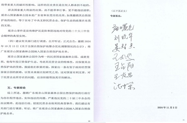 全网关注的观音山不再保留自然保护地,专家:程序违法、实体违法 撰文 曾毅 李海波 10月15日,据国家林草局、自然资源部的公示内容,全国自然保护地将由现有的9240处,整合优化为6736处,2500多处自然保护地被撤并。公示内容显示,涉及东莞的自然保护地达到36个之多,大多数为保留、被撤并,只有“广东观音山国家森林公园”为“撤销”。 此举激起千石浪,多家媒体和网络对此鸣不平,认为是东莞地方政府对民营经济的极力打压造成的不良后果,对东莞的营商环境造成了严重的伤害。 为打造文化名山,观音山人可谓是操碎了心! 广东观音山国家森林公园是南中国知名的网红打卡旅游目的地,森林覆盖率为92%以上,园内繁衍着近千种野植物和300余种野生动物,还有全世界首家古树博物馆。2005年12月23日,广东观音山国家森林公园经国家林业局批准成立,成为全国第一座民营国家森林公园,规划面积为18平方公里。观音山是集森林氧吧、文化体验、姻缘许愿于一体的国家AAAA级旅游风景区,被誉为“南天灵秀胜境,森林康养福地”。原国家林业局发文评价“广东观音山国家森林公园是全国的一块样板”、联合国授予“国际生态旅游示范基地”、“国际生态安全旅游示范基地”、联合国环境规划署授予“中国最具发展潜力的企业”、国际旅游联合会评定为“最美中国旅游目的地”...... 1999年东莞企业家黄淦波接手观音山时还是一片无人问津的荒山,经过25年的特色文化人才和巨资投入才使不名小山变成了举世闻名的金凤凰。而在艰辛发展中遭遇到了地方政府多个部门的种种不法行为而举步维艰,5任林业局长的打压更是雪上加霜。广东观音山国家森林公园的全国自然保护地为“撤销”就是很好的证明! 11月10日,有网友发布《广东观音山国家森林公园作为国家自然保护地具有标杆性意义》认为:一、观音山,一个民营企业如何成为生态旅游的典范?难道说,只有国字号单位才能守护好这片绿色净土吗?看来,保护环境不分出身,关键是要有一颗爱护大自然的心啊!二、听说观音山可能要失去“国家级”头衔,这消息让人不禁疑惑:是不是保护得太好了也会“惹祸上身”呢?毕竟,这么多年来,观音山不仅没有变成一片荒山,反而成为了人们心中的“福山福地”,这背后的努力和付出,真的就如此轻易地被忽视了吗?三、观音山的每一步发展都像是在写一部励志小说,从无到有,从荒山到绿洲,再到今天的生态文化名片,这样的转变难道不值得我们深思吗?如果连这样的努力都不被认可,那未来的自然保护之路,又该何去何从呢?让我们一起为观音山加油,希望它能继续发光发热,照亮更多人的心灵。 专家说法:广东观音山森林公园作为国家自然保护地具有标杆性意义 而《专家说法:广东观音山森林公园作为国家自然保护地具有标杆性意义》文章在网络比比皆是,该文章认为广东观音山国家森林公园作为唯一的民营国家级森林公园,成就斐然,不仅每年投巨资保护生态,而且累计上缴税收上亿元,促进了直接间接在周边生活、工作上万人。专家认为:考虑其民营企业的标杆性、特殊性,应保留其自然保护地的资格,鼓励他们积累经验,探索出一条有别于政府经营国家级公园的新路,以资未来做比较研究之用。对于民营企业所存在的问题,应该积极帮助其尽快解决。 2024年11月2日,广东观音山国家森林公园“自然保护地”问题专家论证会在北京召开,与会论证专家有北京大学法学院教授、博士生导师,中国行政法学研究会副会长,中国立法学研究会副会长,全国人大常委会法制工作委员会行政立法研究组专家湛中乐;中国政法大学教授、博士生导师,中国政法大学环境资源法研究和服务中心主任,中国政法大学检察公益诉讼研究基地主任,中国环境科学学会监事长,中国环境资源法学研究会前副会长,最高人民法院环境资源审判咨询专家,生态环境部环境损害鉴定评估专家委员会副主任王灿发;教授级高级工程师,中华环保联合会能源环境专业委员会执行会长兼秘书长,原煤炭工业部地方局局长、贸易局党委书记王友昌;北京大学经济学院原院长、教授、博士生导师,北京大学市场经济研究中心理事长晏智杰;中国社会科学院经济研究所研究员,中国社会科学院研究生院教授、博士生导师张曙光;中央社会主义学院政治学教研室原主任、教授,中国经济体制改革研究会特约研究员,中国改革20人论坛成员王占阳;北京大学市场经济研究中心副理事长刘晓华。 针对公示撤销广东观音山国家森林公园自然保护地的行政行为,与会专家一致认为: 一.该行政行为存在诸多的程序违法。 公示是怎么做出来的?撤销的依据是什么?谁申请的?谁论证的?有没有利害相关方参加?有没有征求当事人的意见?如果只是根据省市“上报”的意见,听取汇报,而没有调查,没有听证,甚至对于涉事企业也没有通知!由于国家公示所涉及的利益方较多、信息量较大,按规定公示期不得少于10天,而5天的公示期显然不符合规定。那么,根据《行政复议法》《行政许可法》的有关规定,以上皆存在程序违法的问题。 建议当事人申请信息公开。从下往上汇报的“四至不清”,其责任在地方政府,行政机关有责任勘定“四至”,提供红线坐标,履行法定责任。东莞市林业局应协助完成规划编修,不能完成规划编修的责任完全在地方政府。地方政府应当依法