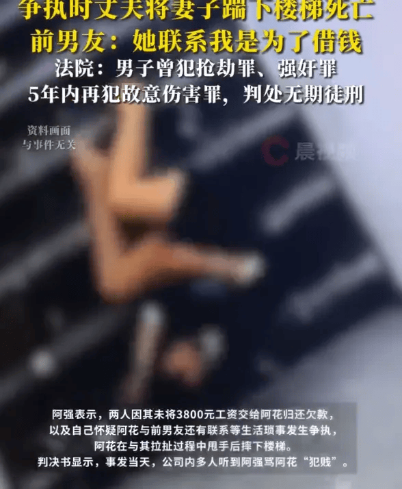 浙江一男子怀疑妻子出轨一脚将其踹下楼致死,判处无期徒刑 据2025年7月18日报道,浙江男子阿强与妻子阿花在同一家公司上班,因怀疑妻子阿花与前男友有染,阿强将阿花一脚踹下楼梯,致其头部受伤,医治无效死亡。 近日,浙江省金华市中级人民法院公开了这样一份判决书。判决书显示:2024年5月24日,阿强与阿花在公司车间内发生争吵,阿花准备从车间楼梯间离开,阿强尾随其后,并用手推阿花头部一下,致其头部撞到车间防火门。后二人进入楼梯间继续争吵、拉扯,其间,阿花欲下楼离开,阿强从后面用脚踹阿花一脚,致其摔下楼梯,头部受伤。阿花随即被送往医院抢救,2024年7月3日经医治无效死亡。阿强表示,两人因其未将3800元工资交给阿花归还欠款,以及自己怀疑阿花与前男友还有联系等生活琐事发生争执,阿花在与其拉扯过程中甩手后摔下楼梯。判决书显示,事发当天,公司内多人听到阿强骂阿花“犯贱”。 阿花前男友表示,他与阿花在2023年8月分手,阿花欠了20多万,他帮她还了十几万。2024年5月,阿花跟他联系,向他借了9000元,说是20号发工资还,但后期找她要钱时发现已经被她拉黑。法院认为:阿强此前犯抢劫罪、强奸罪两度被判刑,刑满释放后五年内再犯故意伤害罪,系累犯,依法应当从重处罚。 判决阿强犯故意伤害罪,判处无期徒刑,剥夺政治权利终身。 来源:江南都市报 综合潇湘晨报、浙江省金华市中级人民法院 |