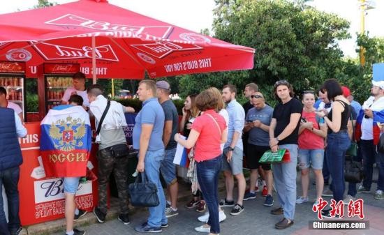中新社记者 王修君 摄"> 6月25日 俄罗斯队迎战乌拉圭队。赛前球迷们在莫斯科麻雀山的球迷节上为比赛预热。 中新社记者 王修君 摄 6月14日,2018年俄罗斯世界杯开幕。在此之前的几天,麻雀山附近已不允许机动车通行。组织方在麻雀山的空地上搭起了舞台,竖起了液晶大屏幕,把这里变成了2018年世界杯球迷节(FIFA FANFEST)的所在地。 在世界杯开始后的十多天里,每天均有数千至上万的球迷来此观球。巨大的人流催火了麻雀山的生意。卖啤酒仅仅是被催火的生意之一。 搭着啤酒大卖的势头,卖薯条、汉堡的生意也不错。25日下午五点是俄罗斯队对乌拉圭队的比赛。很多球迷提前三四个小时赶到麻雀山占个好位置。许多人在买杯啤酒消暑解渴的同时,也不忘买份薯条、汉堡果腹。记者看到,卖食品店铺前的上百个桌子,在开赛前一直都是被占满的。 与卖酒水、食品生意不相上下的是卖世界杯周边商品的生意。麻雀山上搭起了国际足联(FIFA)纪念品官方销售店。里面从足球到队服,从吉祥物到奖杯,应有尽有。记者看到,店里选购纪念品的球迷熙熙攘攘,许多人一次会买好几件纪念品带走。 此外,还有人卖起了俄罗斯国旗和拉拉祖拉。一面不大的国旗300卢布,一个拉拉祖拉售价200卢布。尽管这些成本低廉的产品定价似乎偏高,但几乎每几分钟就有人买走一个。 不是所有的生意都要顾客花钱。可口可乐公司为了赚人气,在麻雀山上搭起了台子,免费帮球迷们往脸上画国旗。虽然只画三笔就能完成的俄罗斯国旗,但等待的球迷队伍依然排出了门外。 不是每个麻雀山上的生意都十分火热。记者看到,一家卖套娃、漆器等俄罗斯民族工艺品的商铺就门可罗雀。店主对此解释说,外国球迷一般去现场看球。而来这里的俄罗斯球迷居多,所以自己的生意不好。 不过这位店主却对接下来的生意很有信心。他认为,随着接下来比赛越来越激烈,球票越来越不好买。因此来这里的人会越来越多,外国球迷也会多起来,所以自己的生意会好起来。 如其所说,据球迷节组织方估计,麻雀山的球迷节最多可容纳2.5万名球迷。尤其在非俄罗斯队比赛时,前往球迷节的人流还有增大的潜力。 目前世界杯小组赛很快将结束。在接下来的淘汰赛阶段,比赛将更加激烈。在记者采访时,很多店家均表示,不敢想象万一俄罗斯队进入决赛后,这里会有多少人来。(完) |