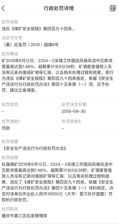 9月27日凌晨,重庆能投渝新能源公司下属松藻煤矿发生一氧化碳超限事故,造成17人被困井下。27日下午2时许,红星新闻记者从綦江县县委宣传部处获悉,17名被困人员已搜救完毕,其中,16人无生命体征,1人已送往医院全力抢救。 “事故原因正在进一步调查中。”綦江县县委宣传部一工作人员告诉红星新闻记者,目前有关该事故的善后工作正在进行,事故原因尚在调查中。 一氧化碳超限,17人被困井下 9月27日凌晨,重庆能投渝新能源有限公司下属松藻煤矿井下2#大倾角因皮带燃烧造成一氧化碳超限,17人被困井下。事故发生后,重庆市、綦江区两级启动应急预案,组织专业救援人员施救,应急、医疗、公安、消防等部门在现场开展救援处置工作。 綦江一权威知情人士告诉红星新闻记者,因为事发矿区在山区,救援人员需徒步进入山区进行救援,来回需要30公里左右,“所以耗费的时间非常长”。另据中新社报道,事故发生地点距离井口较远,井下温度较高,有毒有害气体聚集还未消散,加上自身携带的救援装备较重,给救援造成了较大困难。 公开资料显示,发生事故的松藻煤矿位于重庆市綦江区安稳镇,距重庆市区约124公里,是重庆五大国有煤矿之一,也是重庆最大的煤矿。煤种属于中灰、富硫、低磷的无烟煤,目前已探明储量11.3亿吨,其中规划可开采储量为7.2亿吨。煤炭产品则主要供应重庆地区的火电厂,并为重庆、四川、广东、广西等地的用户提供动力煤和工业用煤。 “有关该事故的善后工作正进行,事故原因也正在进一步调查中。”27日下午2时许,红星新闻记者从綦江县县委宣传部处了解到,17名被困人员已搜救完毕,其中,16人无生命体征,1人已送往医院全力抢救。 事故发生前,涉事单位曾多次被罚 重庆能投渝新能源有限公司官网显示,公司成立于2017年12月28日,注册资本30亿元人民币,业务涉及煤炭开采、洗选加工、销售,火力发电、水力发电、风力发电、瓦斯发电、光伏发电,配售电业务,应急救援等,年煤炭产能1100万吨,装机容量220万千瓦,资产总规模230亿元,员工近2万人,是一家集煤炭、电力和能源服务为一体的新型综合能源企业。 ▲官网截图 而其下属的松藻煤矿则成立于2018年1月25日,法定代表人为李某纲,公司人员规模在1000-4999人。曾在2018年5月,获得建设用地规划许可证(工业);不久,又获得有效期至2019年11月5日的采矿许可证。 另据公开资料显示,事故发生前,重庆能投渝新能源有限公司松藻煤矿曾被重庆市綦江区应急管理局警告或罚款3次,重庆煤矿安全监察局渝南分局立案查处1起和通报1次。 ▲天眼查截图 2019年8月12日,松藻煤矿2324-2采煤工作面回风巷风流中瓦斯浓度最高达到1.48%,超限累计长5分28秒,矿调度室值班人员没有记录向值班矿领导汇报、以及相关处理过程和结果,违反了《煤矿安全规程》第四百九十四条,被罚款1.9万元。 2019年12月,松藻煤矿因矿井下未定期测定预抽瓦斯钻孔孔口负压,违反了《防治煤与瓦斯突出细则》(煤安监技装〔2019〕28号)规定定期测定预抽瓦斯钻孔孔口负压的规定,被警告和罚款1.9万元。 今年4月18日,因松藻煤矿未对3222S采面液压支架间采空区侧进行灌浆的事实违反了《煤矿安全规程》(国家安全生产监督管理总局令第87号)第八条第三款,被警告和罚款2.9万元。 ▲重庆煤矿安全监察局渝南分局官网截图 6月8日至10日,重庆煤矿安全监察局渝南分局在对松藻煤矿进行重大隐患排查治理专项监察时,发现安全隐患9条,责令其1个掘进工作面停止作业,立案查处1起。 7月16日,松藻煤矿3311S综采工作面切割上山班长蔡永国在没有跟班队干监护的情况下,进入工作面溜煤道,且未系保险绳,未出溜煤道便安排江清现放煤,违章作业,违反《作业规程》规定被通报。 红星新闻记者 罗梦婕 陈卿媛 |
