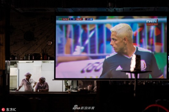 当地时间2018年6月,俄罗斯,2018世界杯持续升温,俄罗斯各地随处可见大屏幕播放精彩赛事。