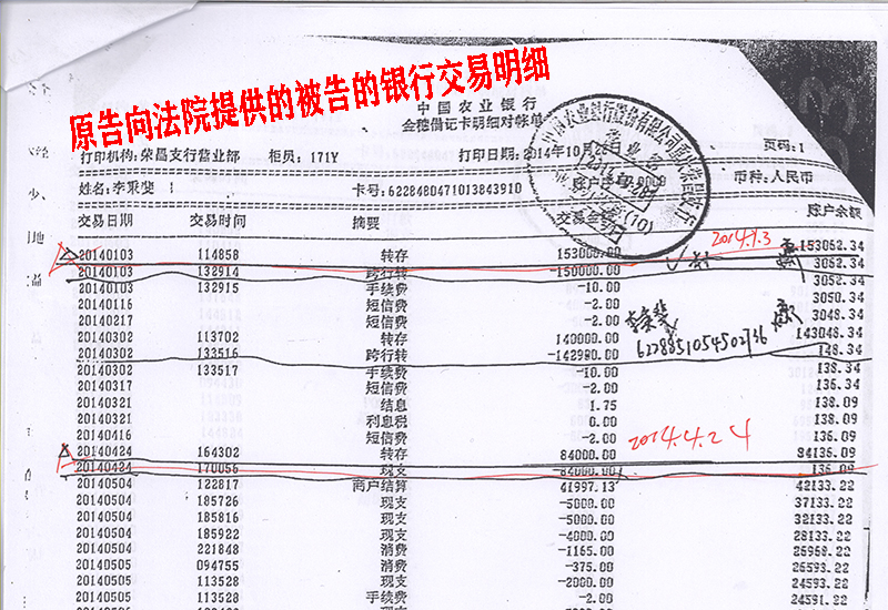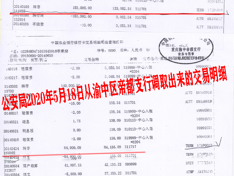 公安局以涉嫌网络诽谤展开调查 银行涉嫌为保护高利贷提供虚假证明 2019年10月22日,被告的妈妈又在网上发表一篇《重庆荣昌区:法官为畜牧局职工伙同学校教职工虚假诉讼一路开绿灯》的文章,事情又反映到荣昌法院院长信箱,同时向荣昌区纪委监委控告。 2020年5月18日,荣昌公安局扫黑办以“晏兵等人被网络诽谤”到农业银行重庆渝中区帝都支行调取被告2013年6月30日至2014年12月31日银行交易明细。 公安机关调出的明细显示2014年1月3日被告收到转存款15.3万元,没显示对方户名及账号,2014年4月24日被告账上收到8.4万元,仍没显示对方户名及账号。被告调出的2014年1月3日只有三笔出账没有进账,只是2014年3月2日收到原告陈晓涛转存款15.3万元;调出的4月24日明细显示只有两笔出账没有进账,2014年5月4日,收到户名陈晓涛转存款8.4万元。所调查的两笔账都是同年、同时、同分、同秒、同金额,就是不同月、不同日。 对于为什么同一户名,同一卡号在银行为什么会出现两种不吻合的交易明细,农业银行一陈姓副行长说是工作人员不小心打印跳格了,行长也是这样回答。 这种荒唐判决,由谁来监督呢? 文章相关链接:这个兽医饲料管理科负责人不简单!一次存款71.64万 重庆荣昌:法官为畜牧局职工伙同学校教职工虚假诉讼一路开绿灯 重庆荣昌:法官涉嫌参与畜牧局职工高利贷诈骗 来源:法治之窗 作者:曾伟 |