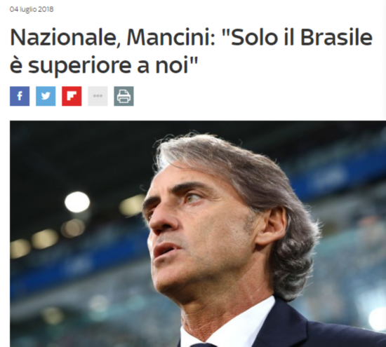 也就巴西入曼奇尼法眼 被别人赶上看台或者留在家里看电视的滋味不好受,曼奇尼现在就是如此。 本届世界杯上,意大利因为没能从小组出线,只能有点伤感地看着其他球队在俄罗斯竞争大力神杯。 《天空电视台》在意大利的子公司电视台5频道采访了意大利国家队主教练曼奇尼,曼奇尼在观看了到目前为止的比赛后表示,“这次世界杯上,除了巴西之外,没觉得其他球队比意大利强。”