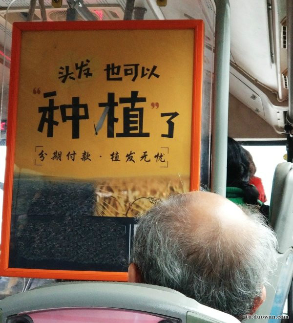 大爷看着广告陷入沉思,我家这么大块地能种多少头发