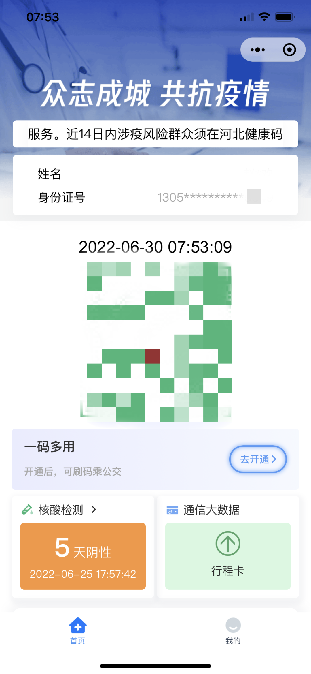 昨天,行程卡迎来重大更新 “星号”标记取消了 即日起!通信行程卡取消“星号”标记 今早,有朋友发现 河北健康码更新了 核酸检测信息和通信大数据行程卡链接调整为了并排展示,计时方式由倒计时调整为正计时,自动计算距离上次检测的时间,即提示“核酸检测24小时、48小时、72小时及3—7天阴性”,同时用不同底色区分(如下图↓),24小时、48小时、72小时底色为绿色,4天、5天底色为橙色,6天、7天底色为红色,更为醒目、直观。检测结果超过7天的将出现弹窗提示,待查询到核酸检测阴性记录后,4小时内自动解除。 计时计算规则为:根据检测完成时间,按照小时计算24小时、48小时、72小时、4天、5天、6天、7天。 另外,还新增了一码多用功能,开通后,可刷码乘公交。 (原标题:最新!河北健康码有大变化) 来源:河北日报 |