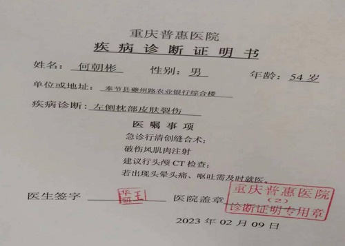 重庆奉节中学教师邱密甜殴打他人缘何逍遥法外 ![]() 尊敬的领导: 我叫何朝彬,奉节县永安镇居民,巫山县大石沟煤矿股东。身份证号:51222619680923****手机:1322863****.现向领导反映我被奉节县中学老师邱蜜甜殴打致伤情况,请求领导过问,依法依规处理。 2023年2月9日上午,我和姝姝何春梅(公司法人)、妹夫邱蜜甜、公司股东卢进才、我父亲何登元在地王广场露天茶馆第一个包间商量处理公司帐务问题,我和何春梅面对面交谈,说到一次转型资金分配时何春梅声音大起来捶桌子并指着骂我,我轻轻推了她一下,对她说今天是处理问题,别骂人。话还没有说完邱蜜甜就突然拿起桌上的杯子砸向我头部,还喊着老子砸死你,我后脑勺当即血流不止,幸好卢进才拉开邱蜜甜,我父亲立马堵住了我,我才没有再被邱蜜甜欧打,要不然我脑袋被砸成什么样就真不知道。之后我父亲立马把我送到奉节县普恵医院紧急治疗,脑袋缝了三针。 我给外地的妻子打电话,她当即电话报警了,之后奉节县第一派出所民警到医院来,叫我做完治疗后到派出所去,我去了问完事情的经过和指认了现场打我时留下的茶杯。 2023年2月14日上午我去派出所问这个事情怎么样处理时,可是民警说是我打我妹妹,邱蜜甜当然得打我啊,并警告要追究我的责任!我懵了,我和我妹妹面对面的在说事,只有他们火气十足,我并没有打人啊,怎么会这样呢?其实他心里早就想很狠狠搞我了,几年来不知多少回打电话骂母亲骂我,要杀我等等,这些事都有证人证明他多次叫器要杀我,邱蜜甜作为一个人民教师他的师德师风何在?他的这种行为真的愧为人师! 因为公司亏损严重我欠债不少,何春梅和邱蜜甜也不按股份将政府补偿款分给我们,我无钱治疗,连拍片子的钱都没有只好回家,被妹夫打、被妹妹坑,无钱无势的我只有忍着痛,含着泪往肚里呑啊!为什么邱蜜甜打人不受处理?就因他人际关系硬,他妹夫陈绪安是奉节县教委主任,所以他在奉节中学任教英语后就到招生办上班,他上午去一下,下午就在茶楼里打麻将喝茶,生活潇洒!并且将公司的资源费460万元私自转入到何春梅帐户,又转入邱蜜甜个人帐户,由邱蜜甜处置,我们股东举报后也没有处理,答复是经济纠纷。正因二次举报了也没有处理,他才肆无忌惮欺压股东,邱蜜甜想干什么就干什么。如此严重的侵占公司财产行为都被轻描淡写的放过,我被邱蜜甜殴打致伤的事情难道也是我咎由自取,不会处理? 这样一来,我们平民无权无势也无钱,就该被欺负吗?特此请求领导明察,对奉节中学邱蜜甜违规控制矿业公司、非法处置矿业公司财产,肆意殴打他人违法行为予以处理为! 控诉人:何朝彬 2023年2月21日 附相关法规: 《中华人民共和国治安管理处罚法》第九条 对于因民间纠纷引起的打架斗殴或者损毁他人财物等违反治安管理行为,情节较轻的,公安机关可以调解处理。经公安机关调解,当事人达成协议的,不予处罚。经调解未达成协议或者达成协议后不履行的,公安机关应当依照本法的规定对违反治安管理行为人给予处罚,并告知当事人可以就民事争议依法向人民法院提起民事诉讼。 《中华人民共和国治安管理处罚法》第四十三条 殴打他人的,或者故意伤害他人身体的,处五日以上十日以下拘留,并处二百元以上五百元以下罚款;情节较轻的,处五日以下拘留或者五百元以下罚款。 有下列情形之一的,处十日以上十五日以下拘留,并处五百元以上一千元以下罚款: (一)结伙殴打、伤害他人的; (二)殴打、伤害残疾人、孕妇、不满十四周岁的人或者六十周岁以上的人的; (三)多次殴打、伤害他人或者一次殴打、伤害多人的。 ![]() 头部被打流血 ![]() 医院出具的诊断书 ![]() 派出所当天出具的受案回执