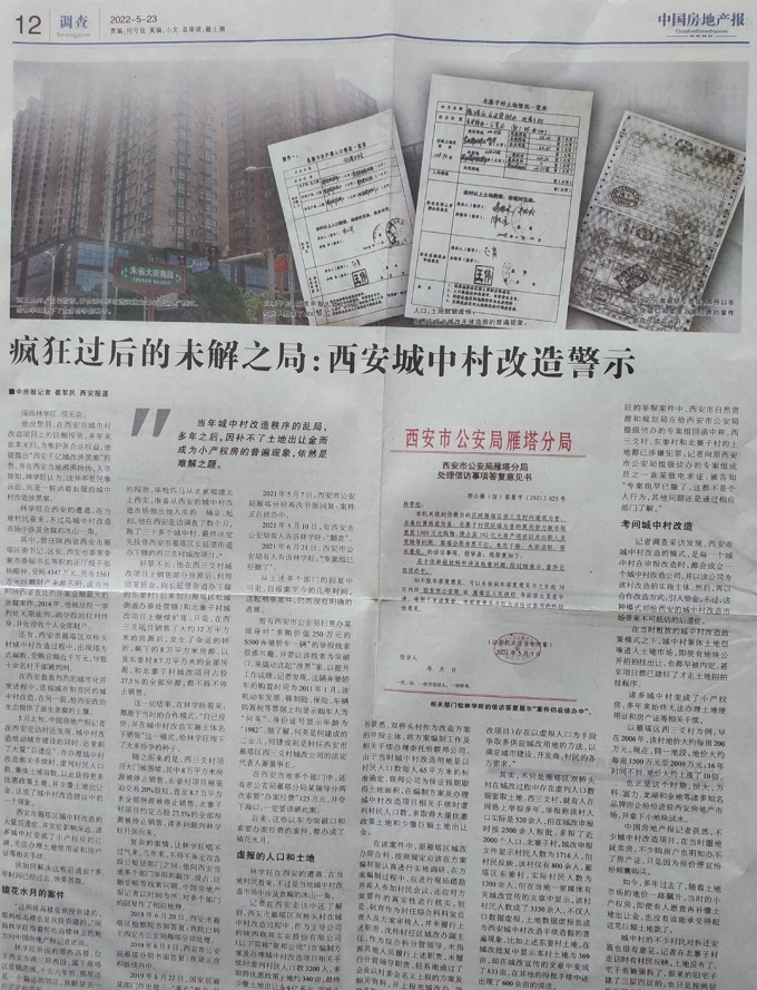 | 专家说法:西安千亿城改项目致闽商林学旺51万平房产被侵占案何时了 特约记者 郑义 闽商林学旺很郁闷,2006年起在西安投资开发的其中51万平方城改项目房产被他人侵占,举报千亿涉黑案件五年没结果…… 投资开发3个村城改项目成西安城改投资开发第一吃蟹人 林学旺在2006年3月从家乡福建到西安,参与了西安市雁塔区3个村城中村改造项目。 ![]() 西安市西三爻改造建设发展有限公司为个人所有 依据《西安市城中村改造建设管理暂行办法》、西安市人民政府令第九号、西安市人民政府市政发【2003】43号、西安市雁塔区发展计划委员会计发[2005]5号《关于西安市西三爻村改造建设工作方案的批复》文件精神,西安市西三爻改造建设发展有限公司对西三爻村实施旧村改造建设。倒签于2005年9月13日,西三爻村改造公司和林学旺控制的陕西融华房地产开发有限公司签订《城中村合作开发合同》,双方约定甲方西三爻公司提供项目位置(约2.8万㎡)建设用地并办理土地审批手续直到施工许可证(除招投标保险费和招标费用以外)其费用由甲方负担。乙方融华公司负责合作项目的资金。分配方案为以建筑面积进行分配,甲方分1/3,乙方分的2/3。合同约定任何一方不得以任何理由不执行或单方面终止本合同,否则承担给对方造成的全部经济损失。 同日双方签订补充协议,约定国有土地证由甲方办理。 2007年5月15日,西三爻村改造公司和融华公司签订《联建合同》,约定甲方西三爻公司提供土地,乙方融华公司出资,乙方每亩开发用地向甲方返还固定利润200万元。甲方西三爻公司承担办理国家土地开发的一切手续和规划定点费用,提供建设用地并办理土地审批手续(除招投标保险费和招标费用以外),其费用由甲方承担,承担安置房屋面积的城市配套费用。乙方负责出资建设并承担设计到最终建设全部费用,承担地面与产权单位的一切补偿。双方还约定:以上条款任何一方不能执行,给对方造成损失承担200万元违约金并承担给对方造成的全部经济损失。 2010年3月24日,拿下西安市北寨子村城中村开发项目的陕西中孜国际置业有限公司和融华公司签订《合作协议》,约定双方成立融联房地产开发有限公司,定为北寨子项目的开发、建设、销售等全过程的经营主体单位,过渡阶段(北寨子村项目拆迁前)以甲方名义经营。约定乙方融华公司林某投入5千万元占股55%,甲方公司杨某钢占股34%、边某朝占股11%。同时约定协议违约金为违约方赔偿另一方已投入资金的双倍,并赔偿给对方造成的一切损失。同日签订了补充协议显示林学旺已转款500万元。 2011年11月20日,拿到西安市东姜村城中村改造项目的陕西时丰房地产开发有限公司和林学旺控制的陕西建惠房地产开发有限公司签订《城中村合作开发合同》,约定对于甲方三通一平约20亩土地(商品住宅楼建筑面积约10万㎡)及该地块经市规划局批准的控制性详规的“时丰.姜溪花都”后期资金全部由乙方建惠公司出资,自主开发且独立核算。甲方负责办理立项、计划年审、定点、规划用地许可证,国有土地证、建审、建设工程规划许可证、施工许可证及预售许可证、房产证等所有手续,费用由乙方承担。乙方建惠公司承担缴纳该地块土地出让金,除甲方3000万元所含费用外,其余该地块费用全部由乙方承担。全部收入归乙方所有,协议签订后甲方三个月向乙方交付三通一平约20亩10万平方左右的建设用地。合同约定违约除向对方支付50万元违约金外,另按完成量价款的5%为日罚金。合同除甲乙方盖章外,还加盖有东姜村城中村改造建设发展有限公司确认盖章。 合同看似美好,然而三个村的合同均约定在甲方的名义下销售,埋下了祸根,使林学旺伤痕累累,欲哭无泪。 三个村都没有按合同约定办理土地手续,致使千亩土地成为违章建筑,沦为小产权房。而林学旺更是被强行索要干股及千万钱财,51万平方房产被占…… 西三爻村何某成:强行索要财物,强占8万平方房产 何某成是西三爻村公司的法定代表人。林学旺投资之后,房产没有产权就被动了,林学旺售楼时的合同、收款收据都要西三爻公司盖章。林学旺称开始的时候何某成就向林要钱要房子,主要是要钱,但是后来何就不满足于向林要钱,天天就从盖章方面来卡他。而且在建设当中何某成经常找人设置很多的麻烦,强迫林学旺让他卖房,向何交2.5%的钱。 ![]() 2007年12月10日,何某成组织手下王某彦弟弟黑蛋等用渣土车封堵工地大门干扰建设。 ![]() 2008年5月17日,何某成侄儿何某林封堵工地大门干扰建设。 ![]() 2008年5月27日其再堵路,与工地管理人员陈某明发生对峙,更是在6月17日,持刀将陈某明砍伤。 林学旺说,所有这些行为,都是对方为了强迫交易,敲诈勒索。 ![]() 在2010年年底何向林强要250万的奔驰轿车,2011年1月5号元月份给其买了价值250万的奔驰轿车。这样下来何某成及儿女团伙共敲诈勒索林学旺达800万元钱款。 即便如此迁就对方,林学旺在西三爻村投资开发的20万平方城中村改造的房地产,他只卖了12万平方,剩下8万平方何某成却不让卖了。 东姜村黄某凌、黄某:强要公司干股,霸占林修建的8.7万平方房产 2009年12月22日,林学旺开始在东姜村投资城改房地产开发,当时东姜村公司以每亩单价150万元卖给他15亩土地。和时丰公司东姜村的项目签约后,2012年5月林学旺交清了全部土地款2250万元。项目还
