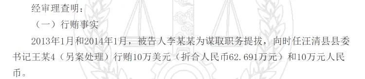 「原标题:向县委书记行贿10万美元,财政局副局长3个月后升任局长」 上观新闻 4月24日,中国裁判文书网公布了一起关于“受贿罪、行贿罪”的一审刑事判决书。被告人李某某,因犯受贿罪、行贿罪,数罪并罚,被吉林省安图县人民法院决定执行有期徒刑六年六个月,并处罚金人民币五十万元。大皖新闻记者查询获悉,李某某即原延边朝鲜族自治州财政局党组成员、副局长李长龙,公开的判决书披露了李长龙的行贿、受贿细节,其在担任县财政局副局长时,向时任县委书记行贿10万美元,三个月后,升任县财政局党组书记、局长。 为谋取职务提拔,两次向县委书记行贿 公开的判决书显示,被告人李长龙,男,1971年1月7日出生,硕士研究生文化,系原延边朝鲜族自治州财政局党组成员、副局长,捕前住吉林省延吉市。因涉嫌职务违法犯罪,于2023年7月4日被延边朝鲜族自治州某委员会采取留置措施。因涉嫌犯受贿罪、行贿罪,经安图县人民检察院决定,于同年12月29日被拘留,于2024年1月12日被逮捕。 从判决书可以看到,李长龙的罪状共分两块,即行贿罪和受贿罪部分。在行贿罪部分,2013年1月和2014年1月,被告人李长龙为谋取职务提拔,向时任汪清县县委书记王某(另案处理)行贿10万美元(折合人民币62.691万元)和10万元人民币。 李长龙行贿判决书截图 4月26日,大皖新闻记者查询看到,2023年7月28日,中共延边朝鲜族自治州纪律检查委员会曾发布李长龙涉嫌严重违纪违法,正接受纪律审查和监察调查的消息,并附有李长龙的简历。2010年10月,李长龙任汪清县财政局副局长,而在2013年4月,升任汪清县财政局党组书记、局长。这一次升任县财政局党组书记、局长,与李长龙向县委书记王某行贿10万美元之间,仅过了3个月时间。 李长龙简历显示其升任县财政局党组书记、局长的时间收受贿赂482.5327万元,在资金拨付、工程项目承接等方面帮忙 判决书显示,在受贿犯罪事实方面,李长龙的受贿时间是从2014年1月开始,一直到2023年3月,即被告人李长龙担任汪清县财政局局长、汪清县政府副县长、延边州财政局副局长等职务期间,其利用职务便利,在财政资金拨付、工程项目承接、补助资金发放等方面为相关单位和个人谋取利益,非法收受他人财物,折合人民币共计482.5327万元。判决书共记载了12起具体受贿事实,大皖新闻记者进行了梳理,主要是为企业承揽相关工程项目在资金拨付、承揽工程项目等方面提供便利和帮助,受贿的数额少则数万元,多则几十万、百万元,还有以明显低于市场价购买房产的形式进行受贿。比如,2014年1月至2018年1月,李长龙为郑某挂靠的企业承揽相关工程项目在资金拨付方面提供帮助,分5次收受郑某给予的共计8万元人民币。又比如,2018年1月至2021年1月,为某公司在项目资金拨付方面提供帮助,分4次收受该公司实际控制人朴某给予的共计100万元人民币。2021年1月,李长龙利用担任汪清县副县长的职务便利,收受某公司法定代表人高某请托,在推进汪清县城市综合停车场及配套设施建设项目中提供帮助,收高某给予的20万元人民币。 一审获刑六年半,并处罚金50万元 被告人李长龙系抓获到案,到案后坦白了行贿事实,主动交代了监察机关未掌握的受贿事实,案发后已退缴全部赃款。 在案件审理期间,被告人李长龙向法院提供足额财产担保其罚金刑执行。法院另查明,延边州某委员会已扣押被告人李长龙上交的违法所得人民币482.5327万元。吉林省安图县人民法院认为,被告人李长龙身为国家工作人员,利用本人职权和地位形成的便利条件,为请托人谋取利益,收受他人财物,数额特别巨大;为谋取不正当利益,给予国家机关工作人员财物,其行为分别构成受贿罪、行贿罪,依法应予惩处。被告人李长龙一人犯数罪,依法实行数罪并罚。鉴于被告人李长龙在受贿罪中具有自首情节,愿意接受处罚,依法予以减轻处罚,在行贿罪中具有坦白情节,予以从轻处罚。被告人李长龙主动上交全部违法所得,真诚悔罪,可以从轻处罚。 李长龙被判处有期徒刑五年六个月综上,判决被告人李长龙犯受贿罪,判处有期徒刑五年六个月,并处罚金人民币三十万元;犯行贿罪,判处有期徒刑三年,并处罚金人民币二十万元。数罪并罚,决定执行有期徒刑六年六个月,并处罚金人民币五十万元;扣押在案未随案移送的被告人李长龙的违法所得人民币482.5327万元,由扣押机关依法上缴国库。 |