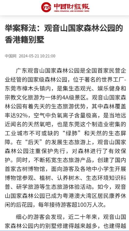 观音山公园,东莞的骄傲!观音山公园,东莞的耻辱 独立撰稿人 游龙 位于广东东莞市樟木头镇的广东观音山国家森林公园是全国首家民营国家森林公园,不仅在全国乃至国际上影响不小,而且对东莞的经济社会发展等方面的贡献也不小:公司年交税收千万元左右(如果不是当地有关部门在观音山2010年成为国家4A级旅游风景区后,门票还是按照当地政府强行的指导价实行2006年的45元至今不予调价的话,观音山年交税收会更多!)、其创新经营模式为服务城市生态环境高质量发展体现了民企担当、为东莞当地社会的经济发展、文明提升、文化繁荣、社会和谐等方面做出了巨大的贡献:景区直接带动300多位员工就业,带动当地数十个行业的发展,间接带动上千人就业和上万人改善生活...... 可以说观音山公园是东莞市的骄傲!而同时因为观音山遭受了不少地方伤害被各大媒体报道关注至今仍未解决,又可以说是东莞市的耻辱! 观音山公园,为东莞发展添彩! 广东观音山国家森林公园地处粤港澳大湾区的中心位置,是我国900多个国家森林公园中全国首家民营国家森林公园。观音山位于东莞市樟木头镇石新村,这是一个原来很普通的四座山头,开始没有正式的名字。1996年,樟木头镇副镇长兼石新村支书蔡伟友决定由村集体开发成森林公园,计划把石新村的这四座山连片开发出来作旅游。樟木头镇和靠近惠州的谢岗镇长期以来都被东莞人叫做东莞的西伯利亚。石新村又被人们称为樟木头镇的西伯利亚,由此可见观音山的位置在当时是何等的偏僻了。 到了98年下半年的时候,累计投入1700多万后项目完成简单的基础设施后资金用完了,而相应的手续却一项都没办,项目就做不下去了,村里的经济受到严重的影响。与蔡伟友书记关系不太对付的村里人就开始告状,从镇里到省里都下来调查,调查的结果是项目必须全面停工。同时开始审核村委账目,于是村委决定把观音山项目连地以1700万元卖了。他们找了包括上市公司的上百家公司,却没人敢接手。村委会又改变为1700万加上50年的利息承包出去,分50年收回,也没有人承包。 历经20多年发展,观音山从无名荒山发展到年游客超100万人次的世界知名宗教文化圣地,跻身国家AAAA级旅游景区,成为领跑中国生态文化旅游先行者。原国家林业局森林管理办公室曾发文称广东观音山国家森林公园开启了民营资本进入国家森林公园领域的先例,也成为我国森林公园投资体制改革中一个难得的样本。 2005年12月观音山公园经国家林业局批准设立为国家级森林公园,并被国家林业局树立为我国民营企业经营森林公园的典范。联合国国际生态安全合作组织将广东观音山国家森林公园设立为“国际生态旅游示范基地”,被联合国环境规划署授予“中国最具发展潜力的企业”称号,国际旅游联合会评定为“最美中国旅游目的地”、中国国土经济学会授予观音山景区“深呼吸旅游度假区”,荣膺全国经济发展与质量品牌授予观音山景区“建国70周年·推动经济发展百强企业,东莞市企业联合会和东莞市企业家协会也授予观音山景区为“副会长单位”…… 观音山在文化旅游方面独树一帜,多次举办中国作家高峰论坛、中国诗歌高峰论坛、粤港万人相亲会等各种全国性文化活动......2021年5月,观音山景区荣获“中国楹联文化名山”、“广东省楹联文化示范山”荣誉称号。2021年10月,中国散文学会授权观音山景区创立“中国散文学会创作基地”,2023年8月,中国作协社联部和中国林业生态作家协会授予广东观音山国家森林公园“生态文学创作实践基地”。 观音山董事长黄淦波以记名或不计名的方式向学校、医院、失学儿童、灾区、贫困老区以及寺庙等捐助600多万元。因行业影响和社会贡献突出在2007年和2008年及2012年黄淦波作为特邀代表三次到北京参加“两会”...... 有东莞市领导和部门 给观音山使坏!