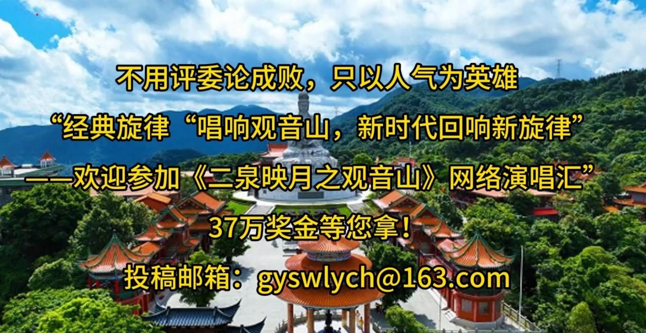 不用评委论成败,只以人气为英雄 东莞市观音山森林公园开发有限公司 北京中记文化发展中心 举办《二泉映月之观音山》网络演唱汇启事  观音山国家森林公园作为全国首家民营国家级森林公园,拥有丰富的自然景观和深厚的文化底蕴。为了进一步提升观音山的知名度和美誉度,弘扬其独特的生态文化和精神内涵,东莞市观音山森林公园开发有限公司和北京中记文化发展中心特举办此次《二泉映月之观音山》网络演唱汇。通过音乐的形式,让更多人了解观音山、爱上观音山,同时也为广大音乐爱好者提供一个展示自我的平台。 一、活动主题 “经典旋律“唱响观音山,新时代回响新旋律”——《二泉映月之观音山》网络演唱汇” 二、活动目的 1.传承和弘扬中国民族音乐文化,提升公众对《二泉映月》这一经典作品的认知和理解。 2.提升观音山国家森林公园在网络文化领域的知名度和影响力,促进文化旅游的融合与发展,推动优秀传统文化的传承与创新。 3.丰富观音山国家森林公园的文化内涵,反映观音山在发展中的艰辛,吸引网友关注观音山的发展。丰富市民的文化娱乐生活,促进文化艺术交流。 三、参赛对象 全国范围内所有热爱音乐、具备一定演唱能力的个人或团队。 四、活动流程 1.活动官方提供的背景音乐《二泉映月之观音山》及确定好的歌词,制作成卡拉OK形式视频。 2. 参赛者在“观音山网络演唱汇”快手[ID:gyswlych]、抖音[ID:gyswlych]和视频号[视频号ID:sphvLRVgn90ybDQ]三平台上的《二泉映月之观音山》作品进行练唱。 3.演唱视频也可以在中国网视台(WWW.CNTV.ONE)等网站找到《二泉映月之观音山》作品下载。 4.参加者将个人演唱的《二泉映月之观音山》制作成视频,发到指定邮箱gyswlych@163.com(包括个人信息、联系方式)。 5.参加者也可以在自己个人快手、抖音或和视频号里上传自己演唱视频。达到1万播放量者将个人演唱视频链接发到指定邮箱gyswlych@163.com(包括播放量截图及个人信息、联系方式)。 6.工作人员选择质量好的视频上传至注册的三平台,并关注参赛者自己提供的平台链接。 7.演唱汇自2025年8月28日起至2026年8月30日截止,由工作人员进行最后统计播放量,确定名次进行颁奖。将邀请前三名到观音山现场表演。 8.邀请相关领导、嘉宾出席颁奖典礼。为获奖者颁发荣誉证书、奖金和奖品。 五、奖项设置 1.冠军1名:奖金8万元(含税),10人观音山叁年内免门票。 2.亚军1名:奖金6万元(含税),8人观音山叁年内免门票。 3.季军1名:奖金3万元(含税),6人观音山叁年内免门票。 4.优秀奖20名:奖金各1万元(含税),各3人观音山叁年内免门票。 六.注意事项 1.本方案项下所有内容不侵犯任何第三方的著作权、商标权、肖像权等合法权益。若因一方提供的材料引发侵权纠纷,责任方应承担全部法律责任。 2.活动期间,如遇不可抗力因素导致活动无法正常进行,主办方将及时调整活动安排,并通过官方渠道通知参赛者。 3.参赛者承诺不以任何形式进行恶意刷取流量,主办方对是否构成恶意刷取流量具有最终判定权。 4.若确认存在恶意刷取流量行为,主办方有权立即取消参赛资格及已获奖项,追回已发放的奖金、奖品或荣誉,将违规行为公示,并保留追究法律责任的权利。 5.本活动最终解释权归观音山森林公园开发公司和北京中记文化发展中心所有。 东莞市观音山森林公园开发有限公司 北京中记文化发展中心 2025年8月28日