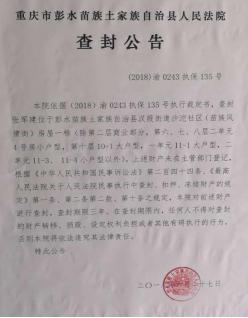 2018年6月27日,彭水苗族土家族自治县人民法院受理了范女士与张军建房屋买卖合同纠纷一案,并出具了(2018)渝0243民初2736号受理案件通知书,同日法院出具了(2018)渝0243执保135号执行裁定书,并在涉案房屋张贴了数张查封公告,张贴不到10分钟,法院的工作人员和车都没开远的时候,冉启川,这位前检察员在众目睽睽之下,将查封公告全部撕毁。法院无奈又第二次进行了张贴查封公告,冉启川又公然撕掉。如此知法犯法,如此胆大妄为,根本没把法律二字放在眼里。 2018年8月17日,彭水县人民法院依法将涉案房屋判决给了范女士,张军建也委托了他人签收,并且已经到了判决生效期。9月11日范女士去依法维权收回房产的时候,冉启川百般阻拦,继续霸占的门岗室,并唆使那些买房人继续加快装修着房子,达到实际占有的事实,根本不把法院查封公告、法院判决书放在眼里。并且召集那些买房人统一口径,范女士无权干涉他们装修。 有冉启川如此霸道的公然对抗法律的做法,其女婿潘东作为充当黑恶势力头目自然是有恃无恐,横行彭水。