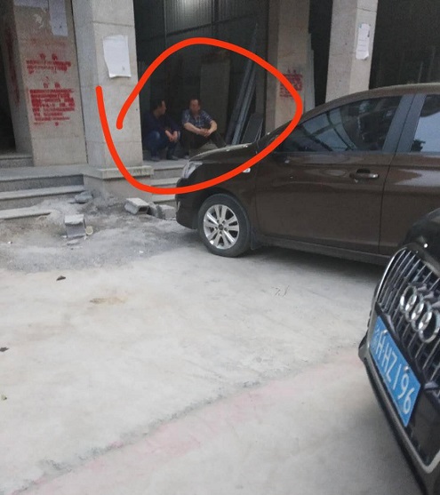 李远波带人强占法院执行给范女士的房屋  这两个人坐在卷闸门下不让商户营业,强行要求商户将房租交给邓强李远波等人