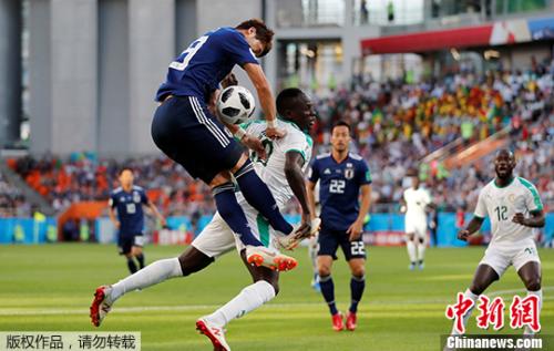 中新网6月25日电 北京时间24日晚,2018俄罗斯世界杯H组次轮日本队与塞内加尔队的比赛在叶卡捷琳堡打响。塞内加尔队凭借马内和瓦格的进球两度领先,但顽强的日本队两度追平比分,乾贵士和本田圭佑分别为日本队攻入两记进球,最终日本队2比2逼平塞内加尔。