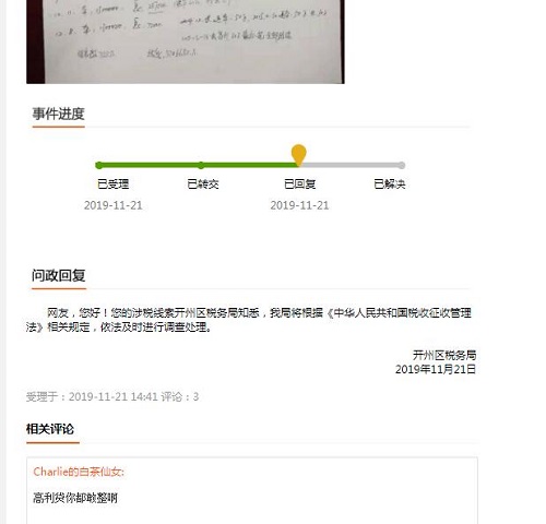 近日,重庆知名企业家向重庆市税务局举报开州区周本玄多次放贷收入超千万元,偷逃巨额税收,昨日在重庆市委办公厅等主办的网络问政平台发布后,开州区税务局当即答复:依法及时进行调查处理。  重庆市税务局: 我叫谢家田,现就周本玄偷逃巨额税收进行实名举报,请贵局查实处理。 谢家田,性别男,年龄56岁,身份证号:5122221962112*****,地址: 重庆市开州区汉丰街道南山中路201号,联系电话: 138961***** 周本玄长期向多人放高利贷,性别男,年龄65岁,身份证号:5122221953041*****,住址:重庆市开州区凤凰城二幢4单元***号,联系电话:156965*****;134362*****;  谢家田向周本玄高利借贷了15次情况 第一笔逃税情况:我从2011年2月28日开始到2015年2月30日止,共向周本玄高利借贷了15次共755万元,从2011年10月19日开始还款或支付利息15次共570.6650万元,这些所得周**没有向贵局申报和缴纳税款吧? 第二笔逃税情况:开州区人民法院(2017)渝0154民初2857号民事判决书显示:2016年12月,周本玄将200万元的谢家田的债权转给李甫能,2015年12月3-2016年12.30利息60万元。这60万元周本玄也没有申报并缴纳税款吧? 第三笔逃税情况:开州区人民法院(2017)渝0154民初3388号民事判决书显示:谢家田偿还周本玄本金884万元,利息从2015年11月起以884万元为基数按年利率24%计算至付清本金之日止。该笔款项我方付给法院1438.8467万元,利息是554.8467万元。 第四笔逃税情况:开州区人民法院(2019)渝02民终885号民事调解书显示:1.谢家田于2019年4月19日前向周本玄支付至2015年9月21日起至2015年12月3日止,以借款本金208万元为基数按月利率2%计算的利息以及至2015年12月4日起至2016年12月6日止以借款本金8万元为基数按月利率2%计算的利息共计120853.34元;2.谢家田于2019年4月19日前向周本玄支付从2015年11月1日起以借款本金25万元为基数,从2015年10月1日起以借款本金83万元为基数、从2015年10月25日起以借款本金200万元为基数、从2017年1月7日起以借款本金8万元为基数均按照年利率24%计算至2018年12月31日止的利息。该调解书已经履行完毕,于今年共向周本玄支付572.3362万元,其中利息是256万余元,周本玄也没有向贵局申报并缴纳税款吧?! 除了本人支付利息其获利1800万元中的偷税,周本玄还有其他人的偷逃利息所得的税款。比如原畜牧局干部万录山向周本玄借款后支付了利息500多万元。周本玄还借给李子清后收了利息300多万元…… 履行纳税义务是每个公民应尽的责任,在此本人特向贵局举办周本玄偷逃税款的违法犯罪行为,敬请贵局查处,并及时反馈给本人相关情况。 举报人:谢家田 联系电话: 138961*****   开州区税务局答复将根据《中华人民共和国税收征收管理法》相关规定,依法及时进行调查处理。