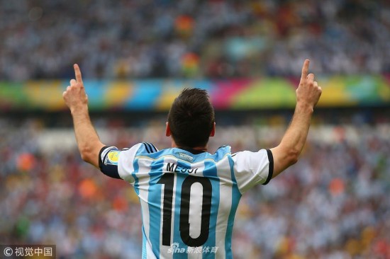 2014年6月25日,巴西贝拉里奥球场,2014巴西世界杯小组赛F组,尼日利亚Vs阿根廷。 梅西在打入第一粒进球后庆祝