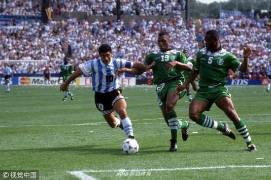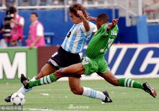 1994年6月25日,美国波士顿,1994美国世界杯小组赛,阿根廷2-1尼日利亚。