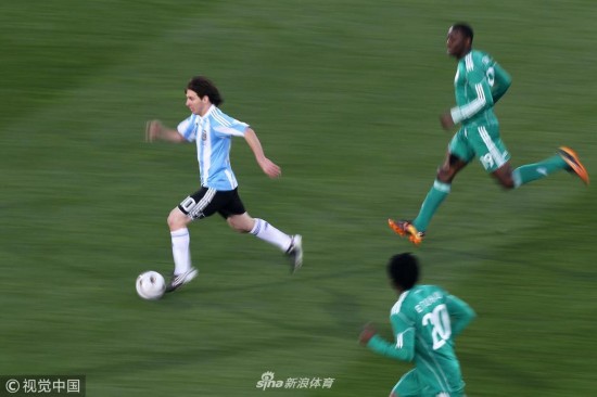 2010年6月12日,南非约翰内斯堡,2010世界杯B组小组赛,阿根廷Vs尼日利亚。梅西带球突破。