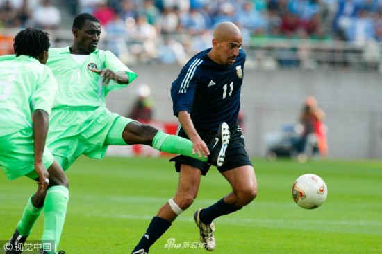 2002年6月2日,韩国釜山,2002韩日世界杯小组赛,阿根廷Vs尼日利亚。贝隆带球。