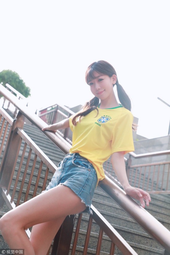 “小林志玲”清纯写真助阵世界杯 肤白腿长力挺巴西