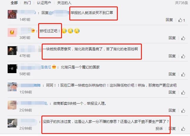 湖北,你是在侮辱国民的智商还是? 独立撰稿人 李海波 据人民日报报道:按照湖北省指挥部部署,省市场监管局等部门门]积极协调武汉小药药医药科技有限公司,加强民用口罩市场供应,13日已筹集首批50万只民用口罩,通过武汉小药药公司销售网络投向武汉商务企业和零售药店。目前,已经有同济堂、好得快、中联等药房共1235家零售药店参加销售,并悬挂对应销售标识。据了解,武汉小药药公司采取补贴运费、税费等方式,按照进货价1元/只供应零售药店,并要求零售药店张贴告示按2元/只平价向市场供应。 那你们可知道,就在一天前的报道里你们湖北的洪湖市还处罚了一家药店的事情?在2月12日的报道《湖北一药房被罚:将0.6元进价口罩卖1元 涉嫌哄抬价格》据湖北洪湖市委宣传部微信公众号“今日洪湖”消息:2月5日,洪湖市市场监督管理局对洪湖市华康大药房涉嫌哄抬口罩价格行为立案调查。经查,洪湖市华康大药房销售-次性口罩38000个,购进价格0.6元/只,销售价格1元/只,其购销差价额高过《省市场监管局关于新型冠状病毒感染的肺炎防控期间有关价格违法行为认定与处理的指导意见》(鄂市监竞争[2020]3号)文件规定的15%标准,涉嫌哄抬价格。目前,洪湖市市场监督管理局已对该案调查终结,没收违法所得14210元,罚款人民币42630元。 网友也在说执法有问题啊! 评论都说洪湖市华康大药房是良心商家啊! |