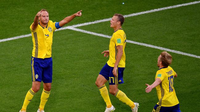 格兰奎斯特射入点球 拉尔森受伤被斯文松换下。瑞典第62分钟扩大比分,贝里突入禁区右肋被莫雷诺铲倒,裁判果断判罚点球,格兰奎斯特主罚点球命中,2-0。落后的墨西哥加强反攻,贝拉开出角球,萨尔塞多头球攻门偏出。法比安任意球传中,埃尔南德斯12码处头球攻门同样偏出。