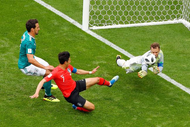 北京时间6月27日22时(俄罗斯当地时间17时),世界杯F组末轮在喀山开始1场较量,卫冕冠军德国0比2负于韩国,积3分小组垫底出局!上半时,孙兴慜错过两次得分机会。下半场,赵贤祐神勇扑出戈雷茨卡头球。补时阶段,金英权进球被判越位后又改判有效,孙兴慜反击再下一城。详情>>