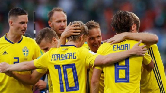 瑞典拿到小组头名 在世界杯超级大稳胆德国队和连续6届进入16强的墨西哥队所在的小组,谁能想到没有伊布的瑞典会最终夺得小组头名?3场比赛下来,瑞典唯一的失利是被德国最后时刻绝杀,最后一轮的出线生死战干净利落大胜墨西哥,将16强门票牢牢攥在自己手里。在附加赛闷死意大利,瑞典坚韧的防守和良好的整体性给人留下了深刻印象;但到了要进球要出线的时候,他们的进攻同样不含糊。看起来被德国绝杀似乎已经注定了瑞典出局的命运,但他们拿出了超乎多数人想象的优秀表现。另一个16强的惊喜是日本队,他们前两场比赛发挥优异,但第三场生死战的表现遭人诟病。面对E组第二名瑞士队,瑞典还有更进一步的可能。 最佳比赛:葡萄牙3-3西班牙