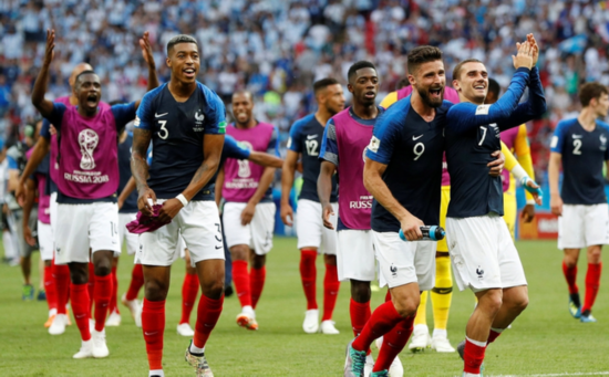 法国阵容球星云集 再之后,姆巴佩一人接管了比赛,在4分钟内轰入了两球,直接终结了比赛。这支法国队的天赋令全世界都感到羡慕。在各条线上都有着世界顶级的球星。不要忘了,这届法国队的平均年龄只有26岁,是世界杯32强当中第三年轻的球队。而且替补席上还坐着身价1.5亿的登贝莱,7000万的费基尔与勒马尔等人。 不要忘了,在本届杯赛当中德尚还没有征召马夏尔、科曼、拉波尔特、拉比奥特等一批青年才俊。这实在是法国队妖人爆棚所导致的。法国媒体之前称就目前法国的人才储备来说,德尚可以排出至少4套极具实力的阵容,这话丝毫没有任何夸张的意味。博格巴日前开玩笑的说:“这也许是我的最后一届世界杯了,任何在法国队踢球的人都是幸运的。”并不是博格巴对自己实力没有信心,而是法国队人才实在是太多了,缺了谁都不会有太大的影响。