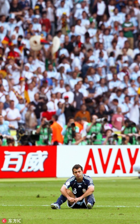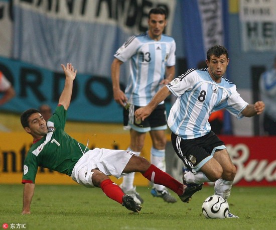 当地时间2018年6月30日,俄罗斯喀山,2018世界杯1/8决赛,法国4-3阿根廷。赛后,阿根廷球员马斯切拉诺宣布退出国家队。2006-2018,马斯切拉诺4次参加世界杯,出战20场;国家队层面,更是创纪录的为国征战147场。“是时候说再见了。从现在起,我是一名阿根廷球迷了。”,愿未来的日子,小马哥一切都好。图为当地时间2006年6月24日,德国莱比锡,2006年德国世界杯1/8决赛,阿根廷VS墨西哥。