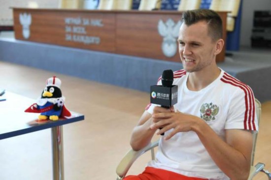 腾讯体育专访切里舍夫 撰文/王正坤 视频/赵航 作为世界杯小组赛攻入3球的当红球星,作为东道主俄罗斯队唯一在海外踢球的世界杯国脚,丹尼斯-切里舍夫,这个世界杯前在俄罗斯还默默无闻的前皇马球员,如今已经成为了战斗民族的新宠儿。 从边缘国脚到头号射手,从被伤病困扰的失意者到在世界杯舞台绽放的幸运儿,在切里舍夫成功的背后,有的是太多不为人知的心酸。但当他走过这一切,当他在世界杯上破门圆梦的时候,切里舍夫的名字在俄罗斯足球的历史上写下了全新的辉煌篇章。1/8决赛,面对自己最为熟悉的西班牙,面对自己曾经的队友,切里舍夫的故事还远未结束。 世界杯破门如同做梦 我们有能力击败西班牙 实际上在世界杯之前切里舍夫在俄罗斯国内的知名度相当之低,作为唯一在海外效力的俄罗斯国脚,他的状况并不被太多的俄罗斯人熟悉和关注。连续因伤错过两次大赛的他,这次能够入选或许是因为俄罗斯队友出现伤病,如果科科林等人在世界杯前还能保持健康的话,或许切里舍夫连踏上世界杯舞台的机会都没有。但幸运的是最终机会真的落在了切里舍夫面前,而且被他牢牢地抓住了。 如果不是米兰丘克在训练中的状态实在糟糕,如果不是扎戈耶夫在揭幕战22分钟就受伤下场,或许切里舍夫哪怕进入了23人大名单也难以得到上场的机会。但是机会总是眷顾着有准备的人,穿着一件跟前锋似乎毫不沾边的6号球衣,切里舍夫已经轰入了3粒进球并且帮助球队成功小组出线,对于切里舍夫来说,这一切是他在世界杯之前完全不敢想的。 腾讯体育:这是你人生中第一届大赛,还是本土世界杯,在你被选入最后23人大名单时,你的心情如何?
