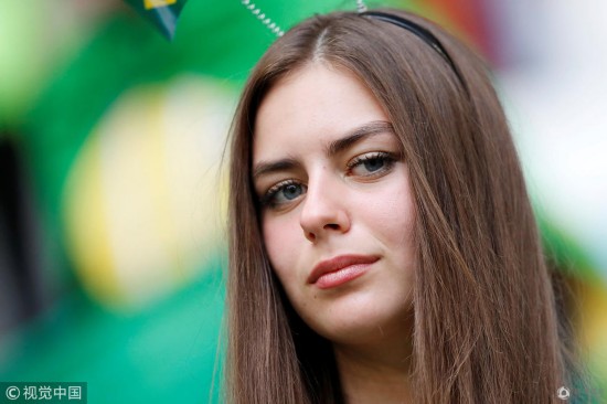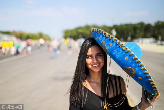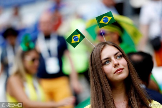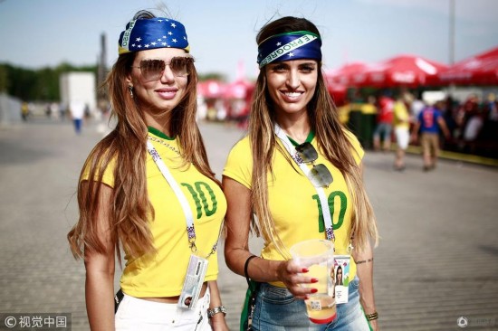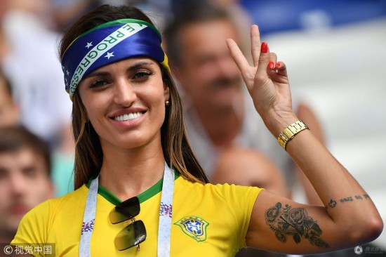 腾讯体育7月2日讯 2018俄罗斯世界杯1/8决赛,巴西Vs墨西哥,球迷助威观战,看台上的女球迷颜值很高,更有球迷备好了酒,是不是喝了之后才能嗨起来?